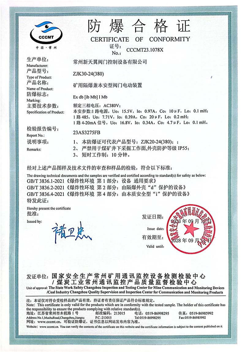 礦用產(chǎn)品安全標(biāo)志證書ZJK30-24(380)