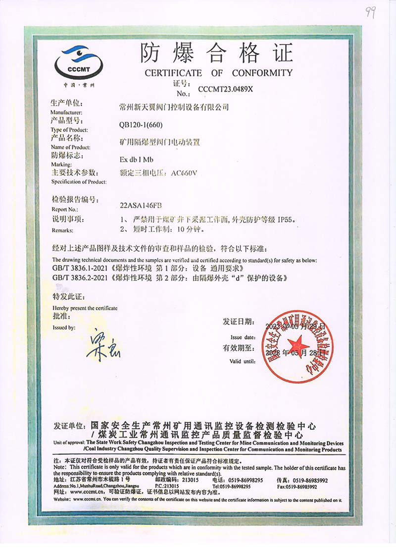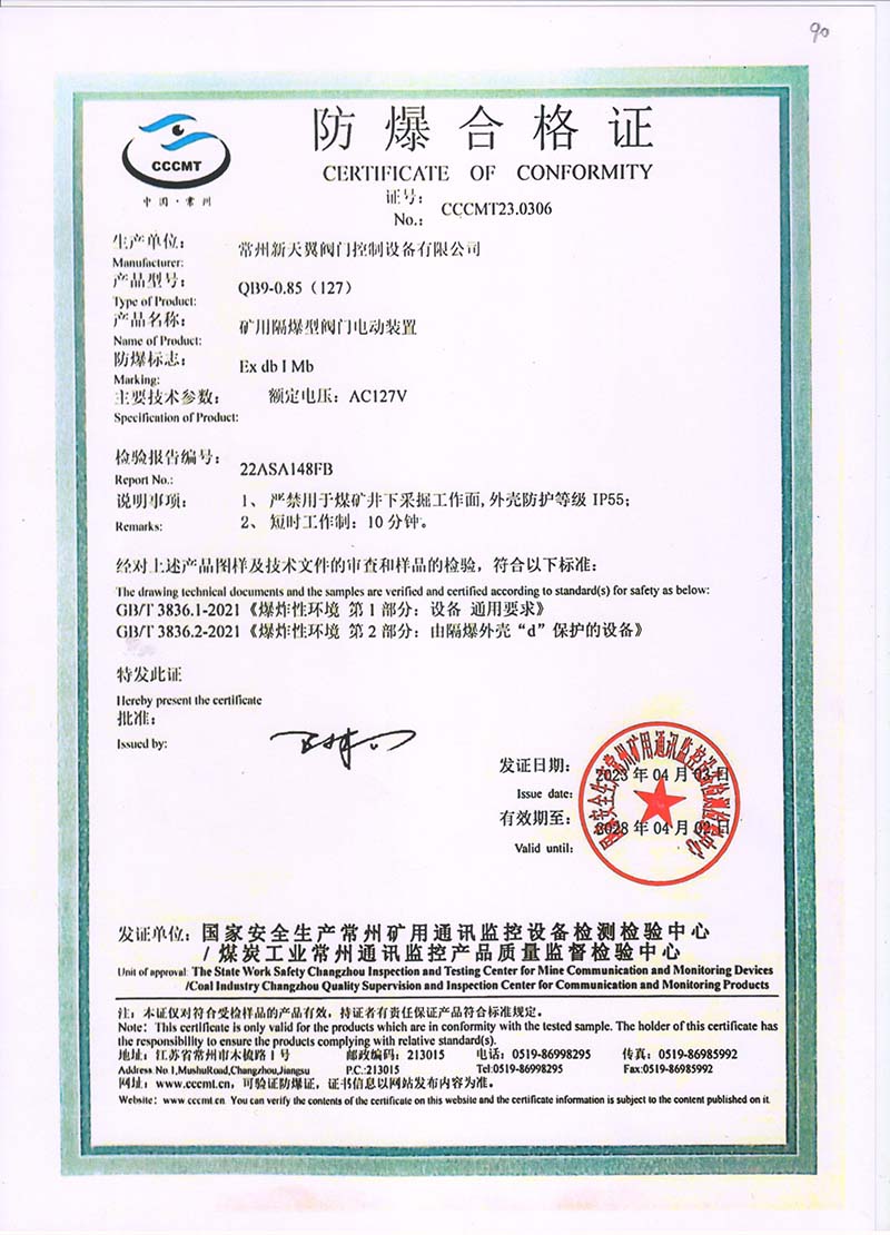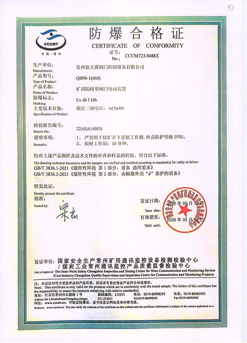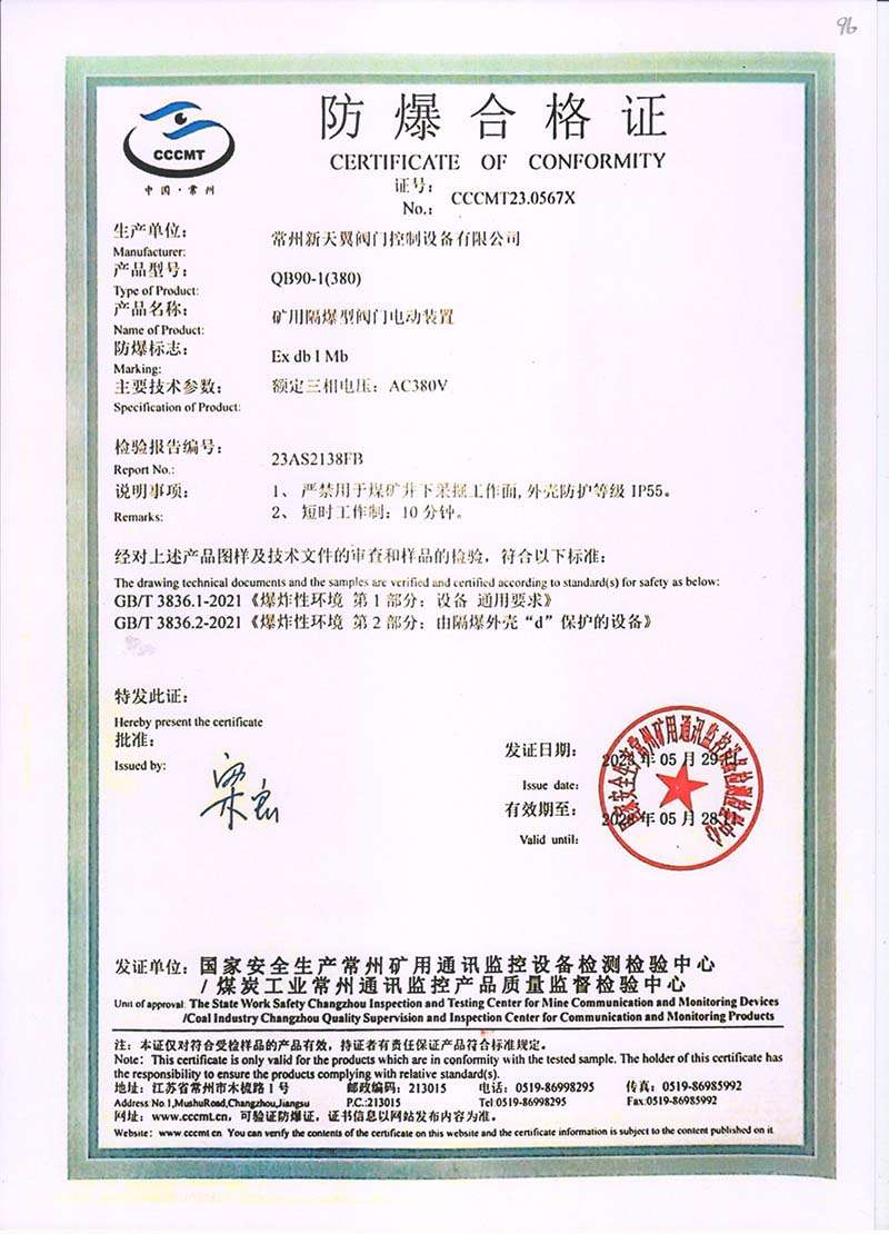 隔爆型QB QBZ QBT 220380中國國家強制性產(chǎn)品認(rèn)證證書107.2