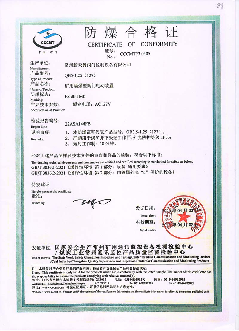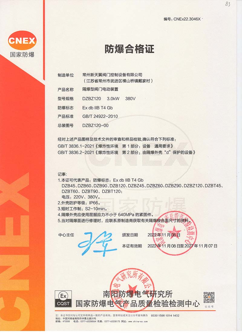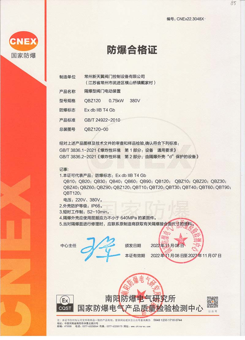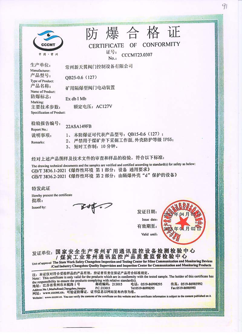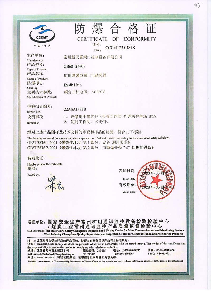 隔爆型QB QBZ QBT 220380中國國家強制性產(chǎn)品認(rèn)證證書107.2
