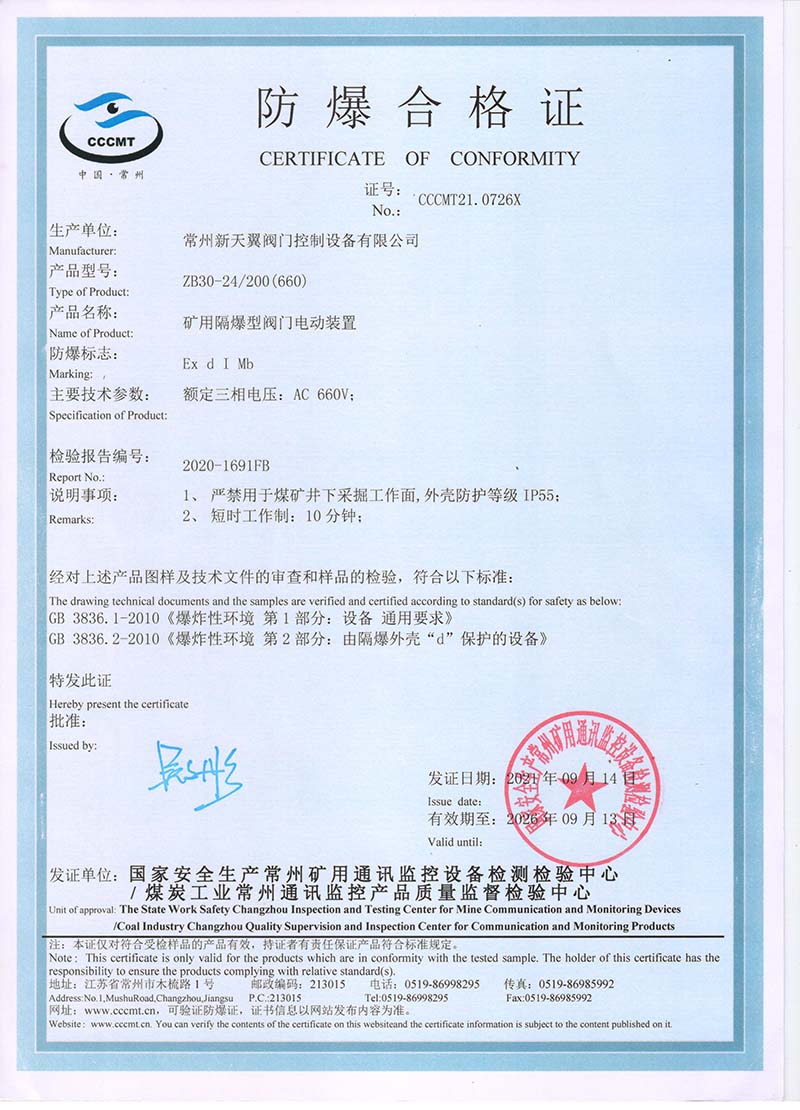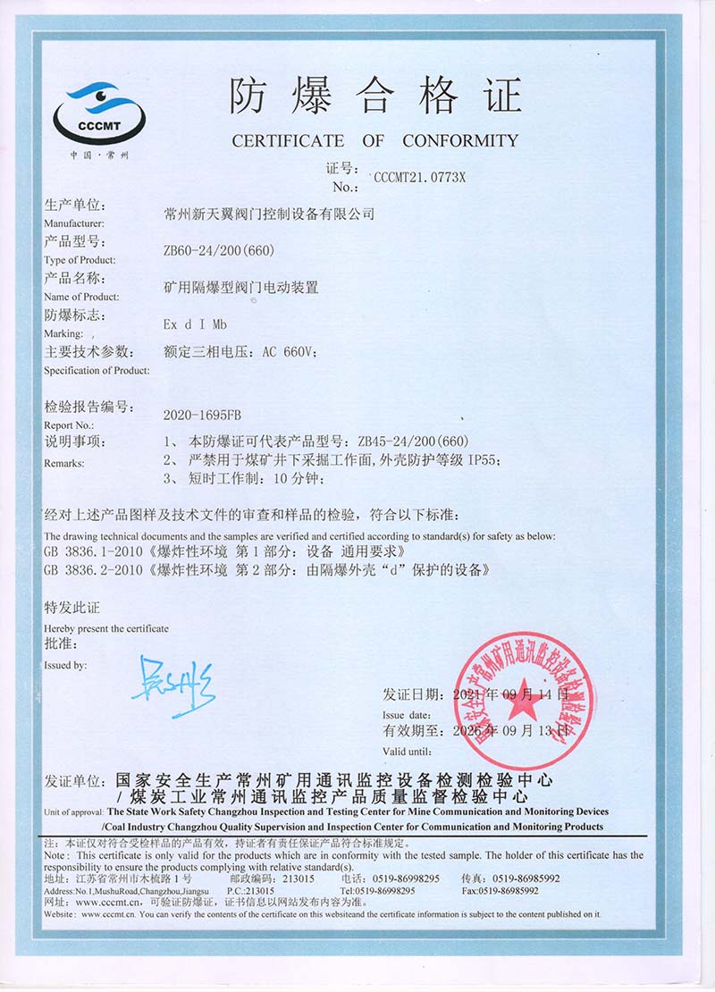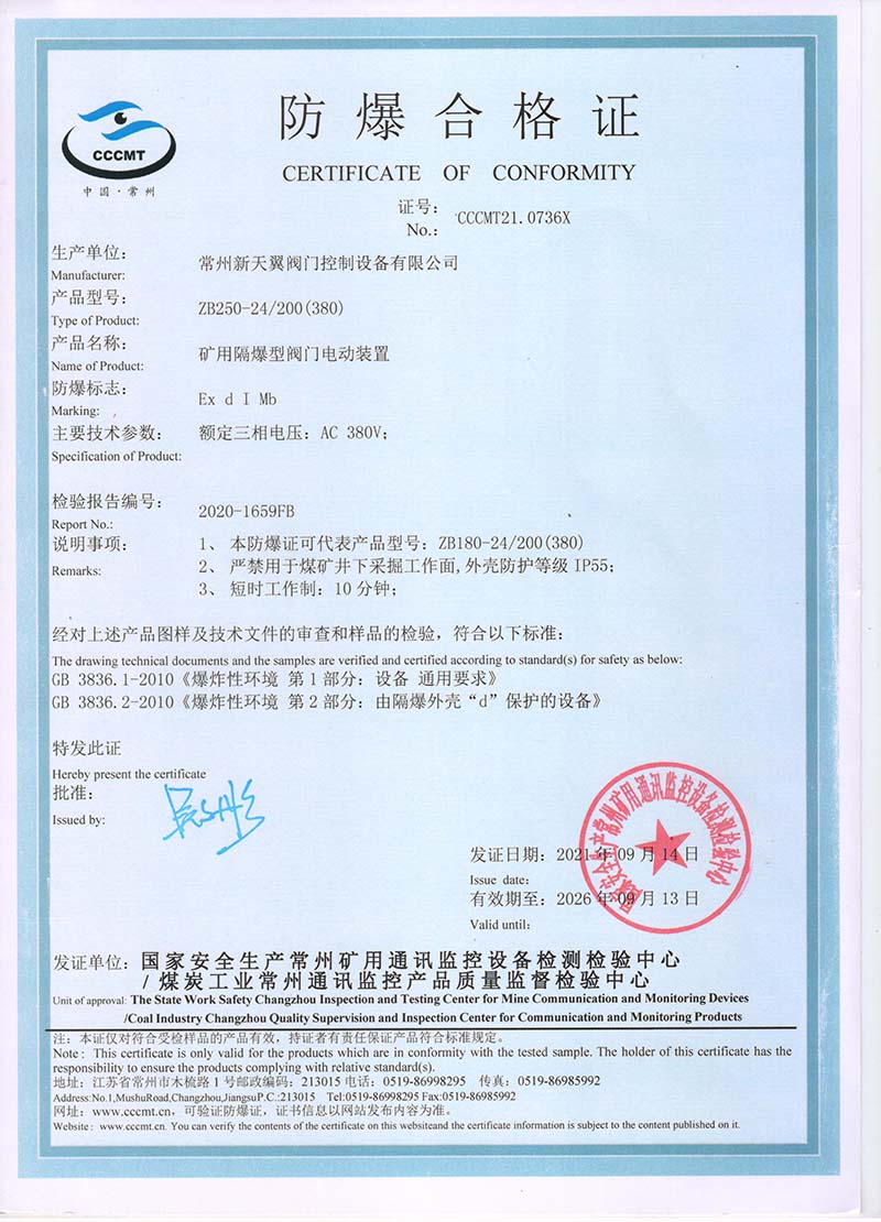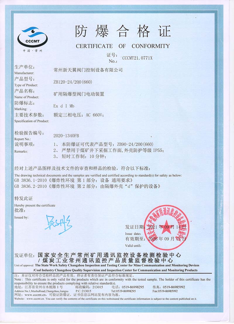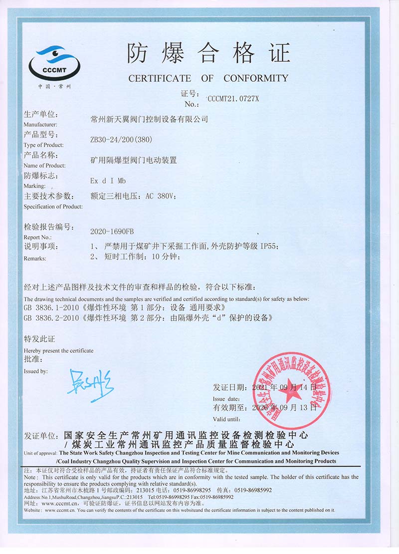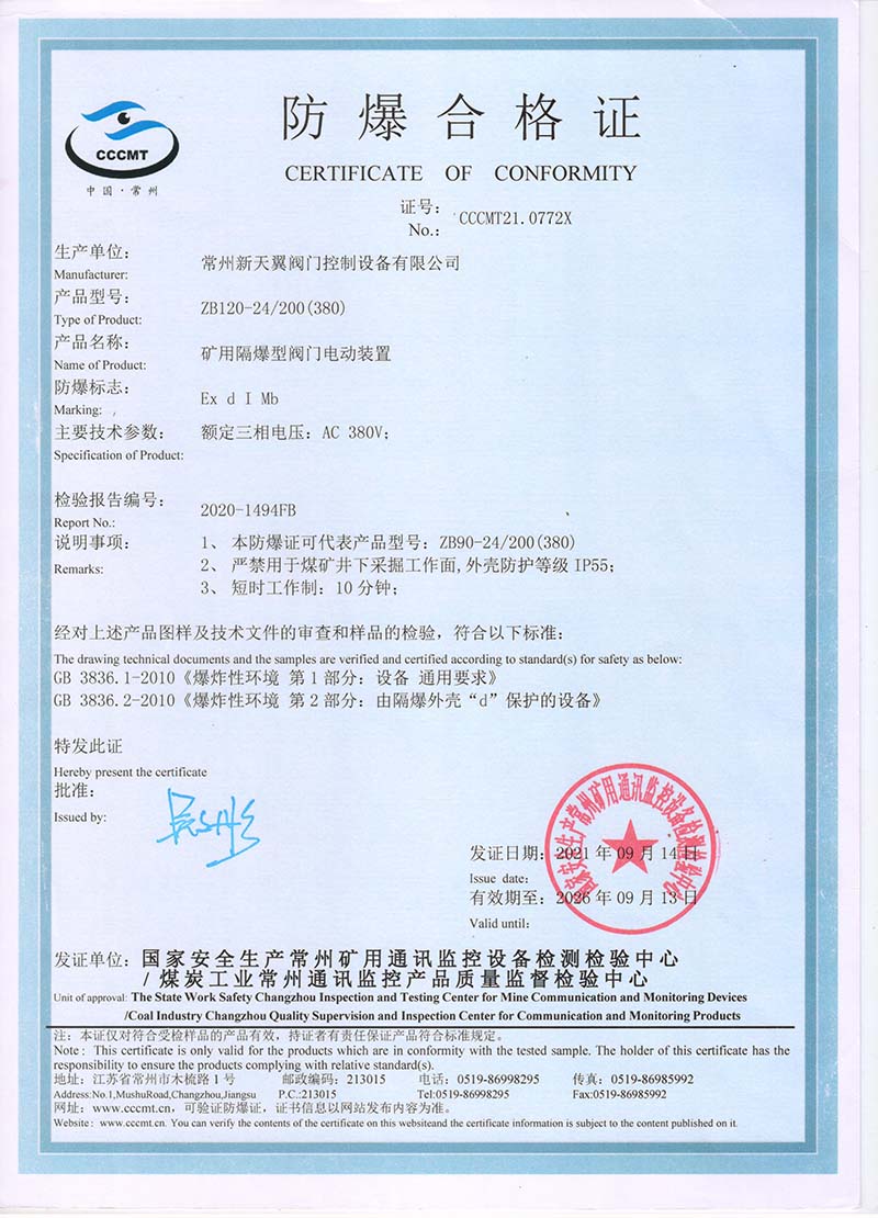防爆Z10B Z10FB中國國家強制性產(chǎn)品認(rèn)證證書109.2
