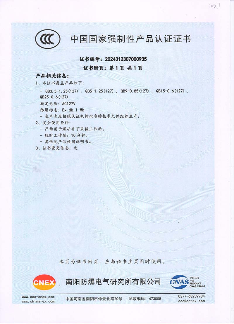 隔爆型QB QBZ QBT 220380中國國家強制性產(chǎn)品認(rèn)證證書107.1
