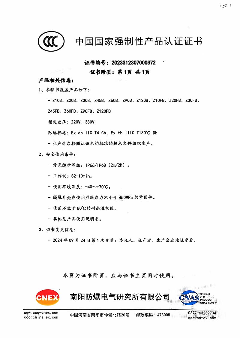 防爆Z10B Z10FB中國國家強制性產(chǎn)品認(rèn)證證書109.1